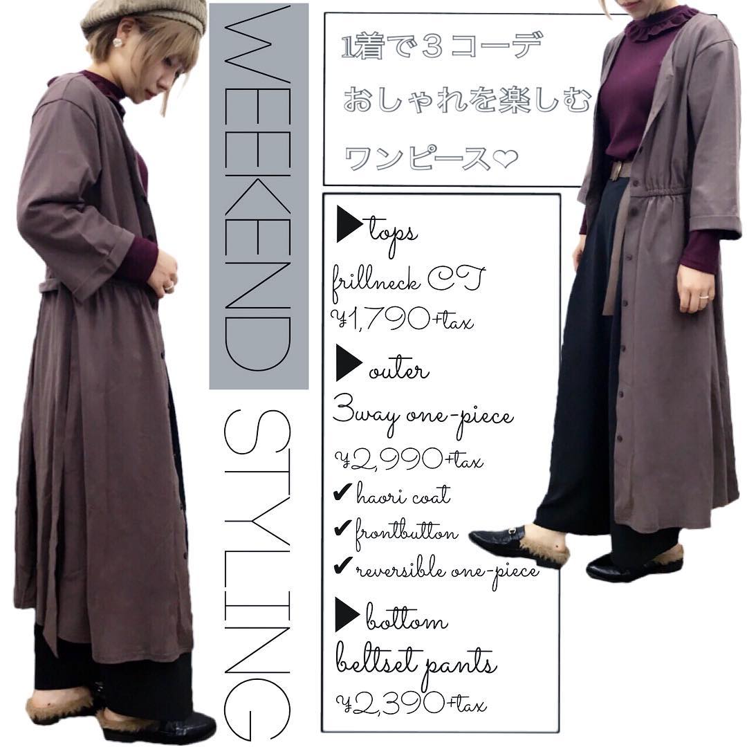 ▽weekend styling▽そろそろ羽織りが欲しくなってきた前後で着れるワンピースボタンを開けて羽織りにもなる3way?こんなワンピ欲しかった❣❣❣#retrogirl #レトロガール#新作#3way#ワンピース#ガウン#アウター#秋コーデ#プチプラ#ootd#instagood#fashion #大人カジュアル#グラニールック