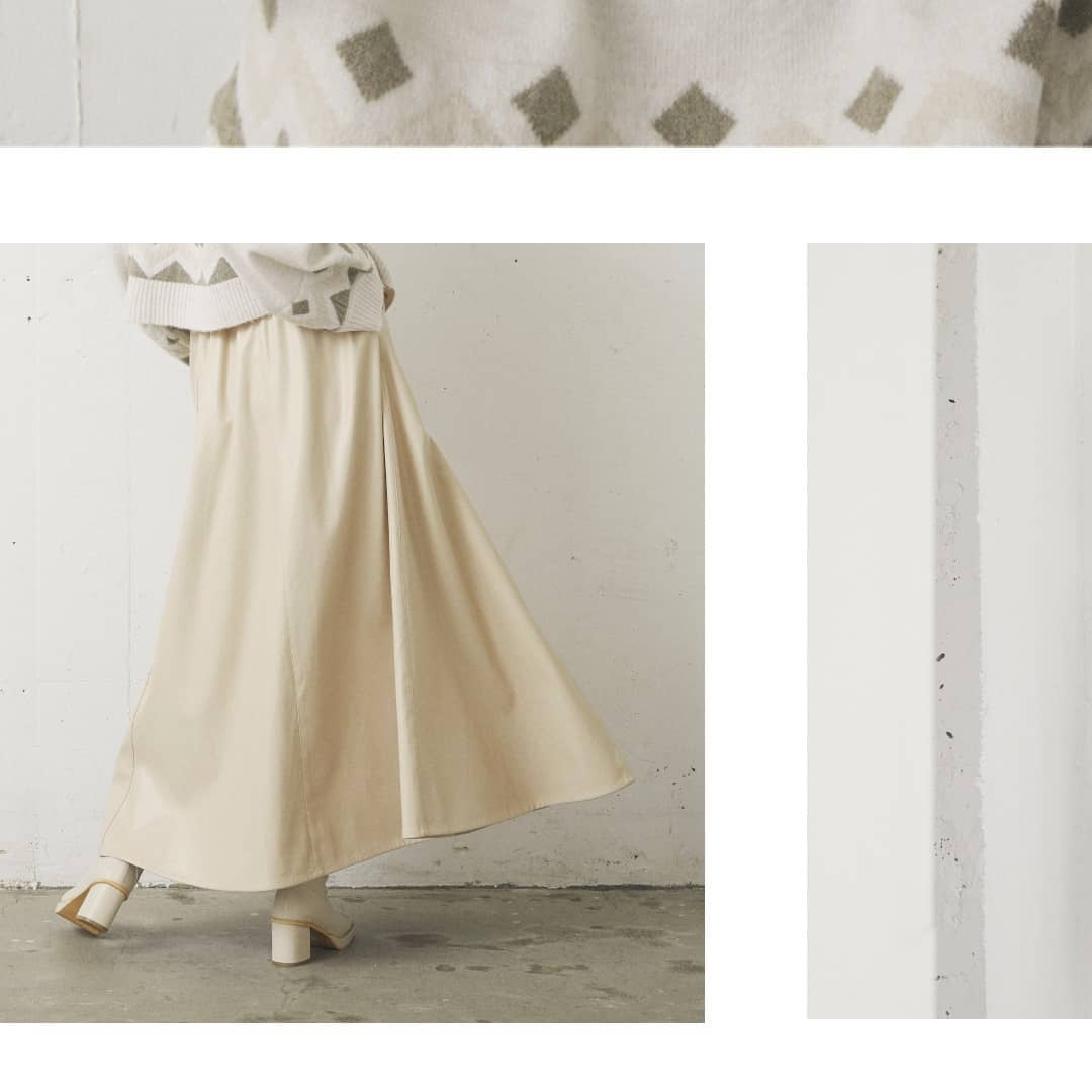 .レザーライクマキシスカート¥4,900+taxcamel/ivory/blackフレアラインがとっても素敵なフェイクレザーのマキシスカート。ウエストの後ろ部分はゴム仕様です。しっかりロング丈なところもポイント。..