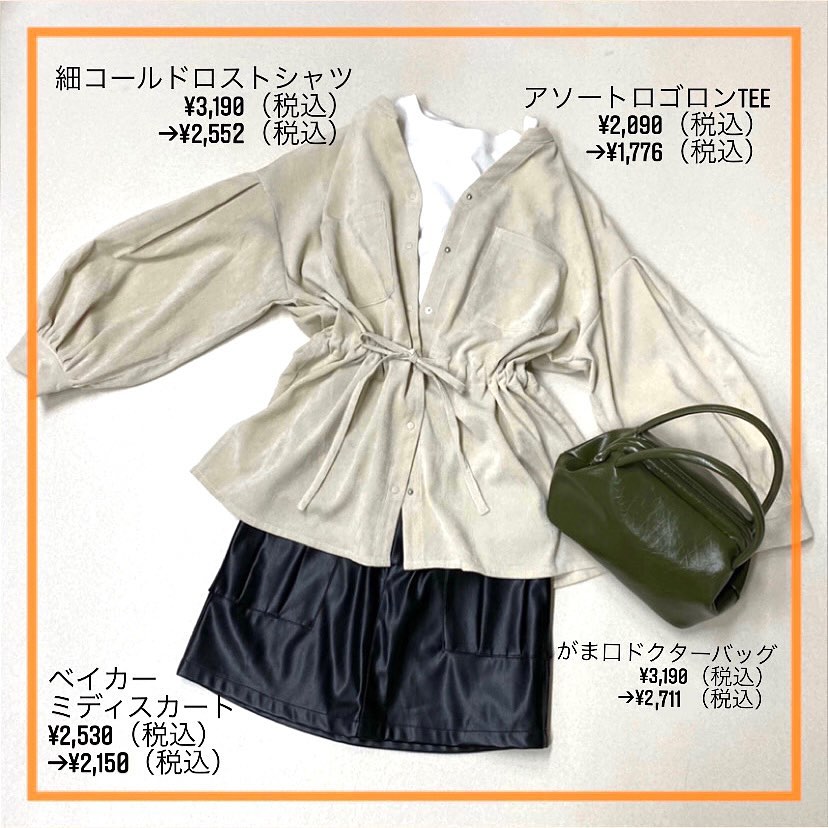 .【new color】? RW056931N001 Fレザースカート▷¥3,190(税込) (店頭.オンライン入荷中)∥color∥ white brown / blackも追加入荷∥staff∥ 157㎝#retrogirl_ootd#レトロガール#レトロガールコーデ#トレンド …