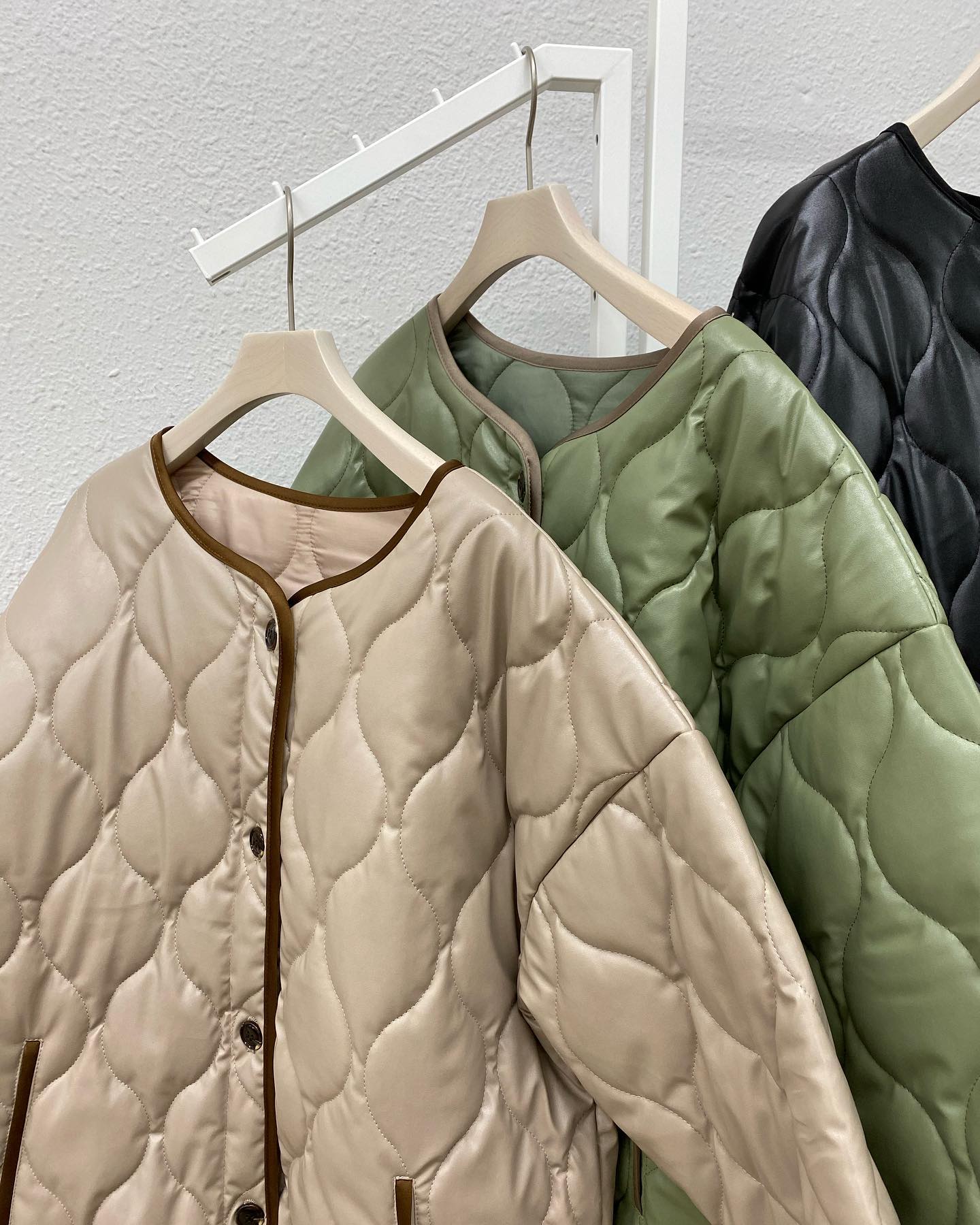 .【new arrival】? RU056921T001 Fレザーキルトパイピングコート▷¥5,390(税込)(店舗今週入荷中.オンライン入荷中)∥color∥ green / brown / black大人気のパイピングコートがレザーとキルティング仕様になって入荷上級 …