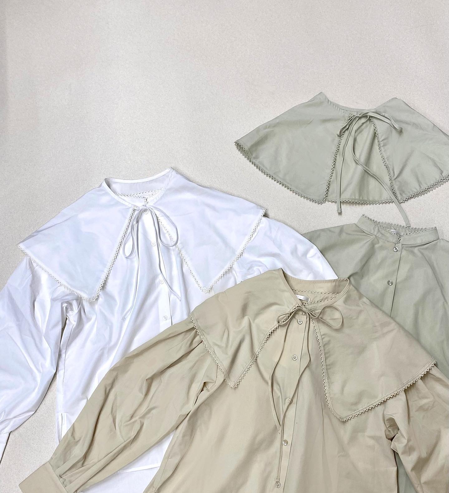 .【new arrival】?RP156423T002 デカ襟2Wayブラウス▷¥3,190(税込)(店舗今週入荷.オンライン予約受付中)∥color∥ white / ivory / green襟が取り外せるタイプ今季トレンドの襟デザインはおしゃれさんなら一枚は持っておきたい …
