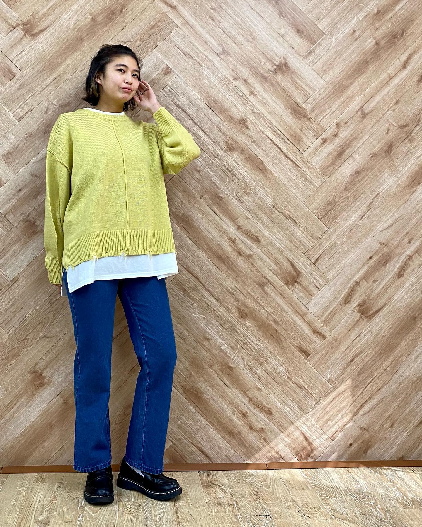 .【new arrival】?RP180012B003 FレイヤードダメージNT▷¥3,190(税込)(店舗今週入荷.オンライン近日入荷予定)∥color∥yellow / beige / blue#レトロガール#レトロガールコーデ#トレンドファッション#プチプラコーデ#ダメージ #ダメ …