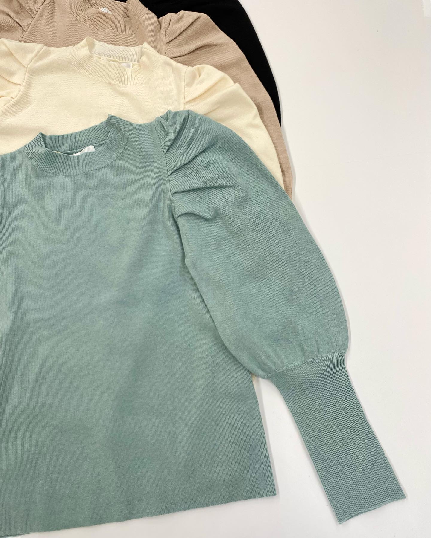 .【new arrival】?RP180012G001 パワショルリブニット▷¥2,530(税込)(店舗入荷.オンライン近日入荷予定)∥color∥ white / green / beige / blackトレンドのパワショルデザイン袖が長くなって春カラーでご用意#retrogir …
